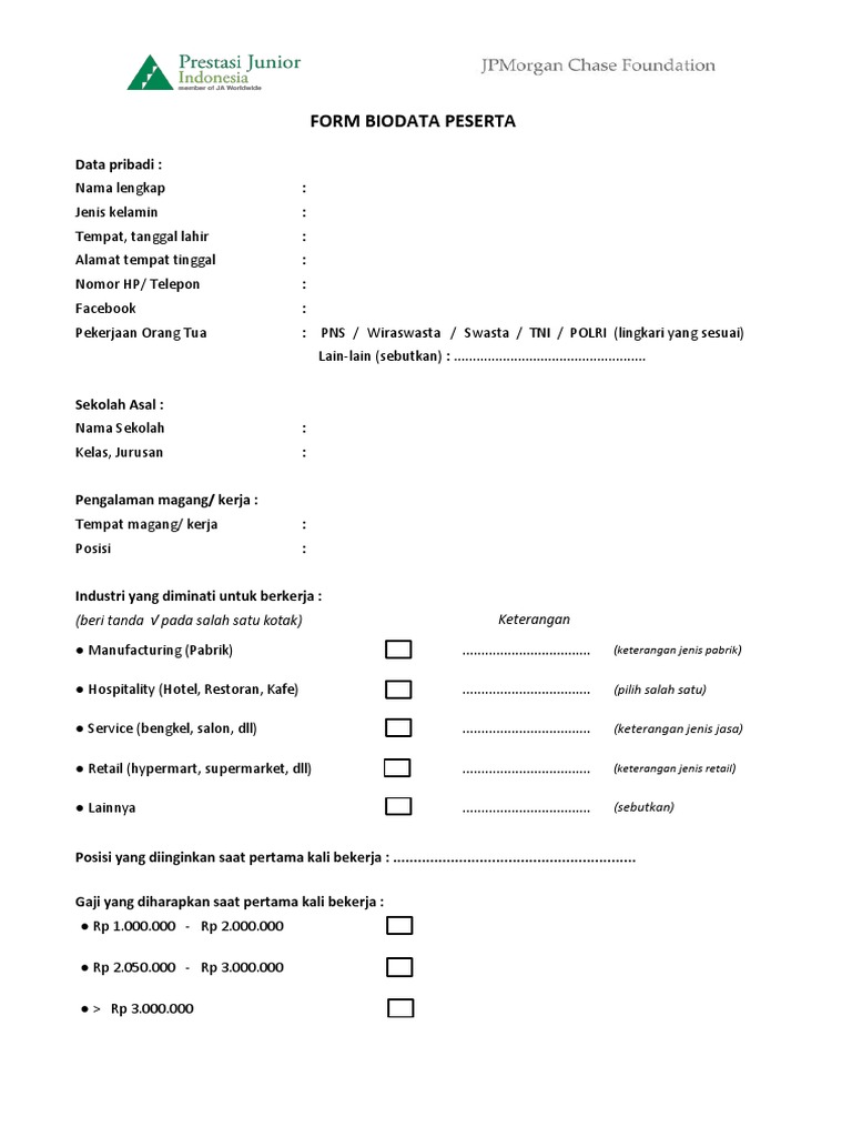 Siswa baru yang mendaftar di smp plus babussalam, khususnya untuk masuk ke pesantren, mayoritas berasal dari luar kota. Ada banyak bentuk form biodata yang bisa anda pakai sesuai dengan kebutuhan yang diinginkan. Download free printable biodata form samples in pdf, word and excel formats. Ini adalah aplikasi pengisian biodata calon mahasiswa universitas negeri padang. 2 (kedua) dari dua bersaudara …